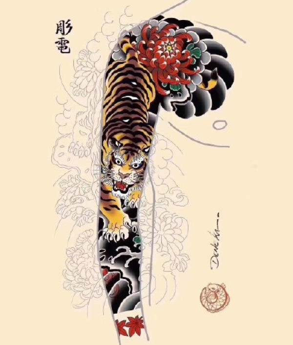 半甲唐狮手稿 传统的9款唐狮主题半甲纹身手稿图片