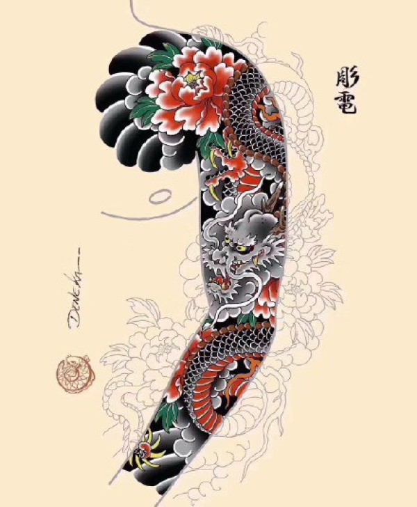 一组满背大气九龙拉棺纹身图案作品和手稿