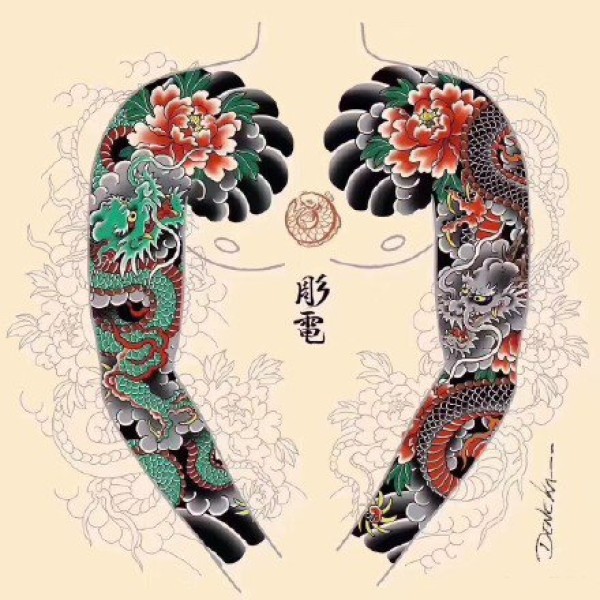 日式大板雾满背纹身手稿