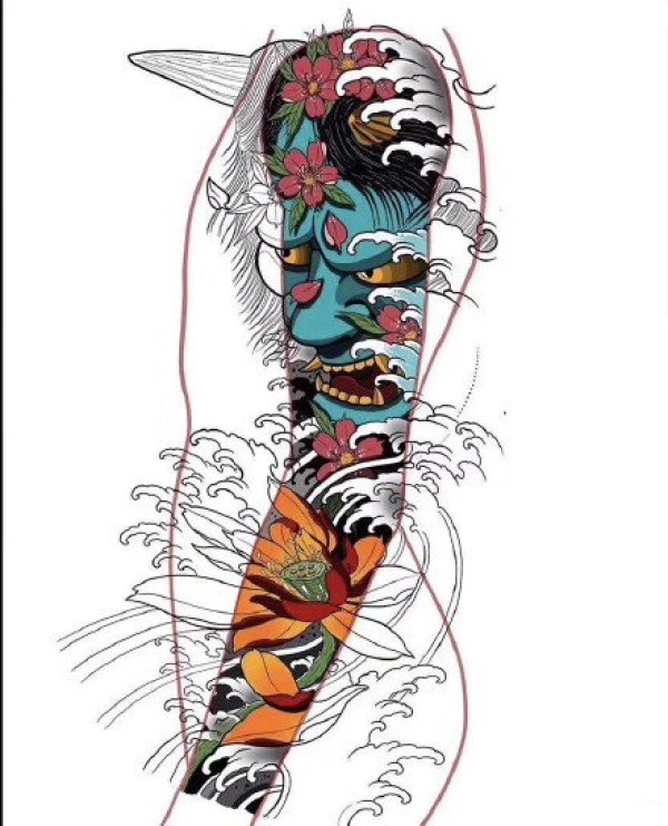 半甲唐狮手稿 传统的9款唐狮主题半甲纹身手稿图片