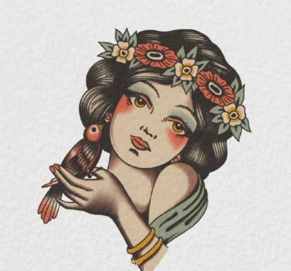 传统艺妓般若纹身图案手稿