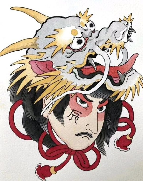 半甲唐狮手稿 传统的9款唐狮主题半甲纹身手稿图片