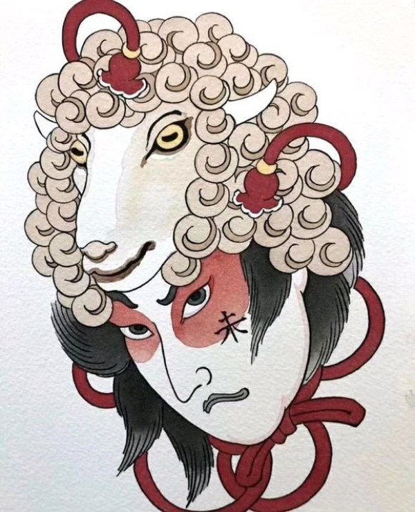 半甲唐狮手稿 传统的9款唐狮主题半甲纹身手稿图片