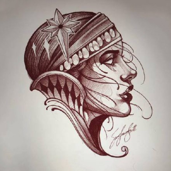女生喜爱的简单手绘纹身图案来自于纹身师安雅