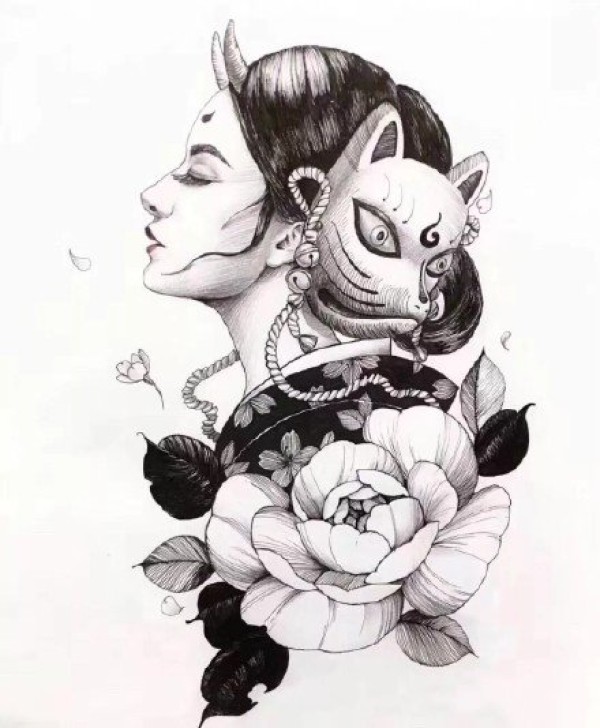 传统艺妓般若纹身图案手稿