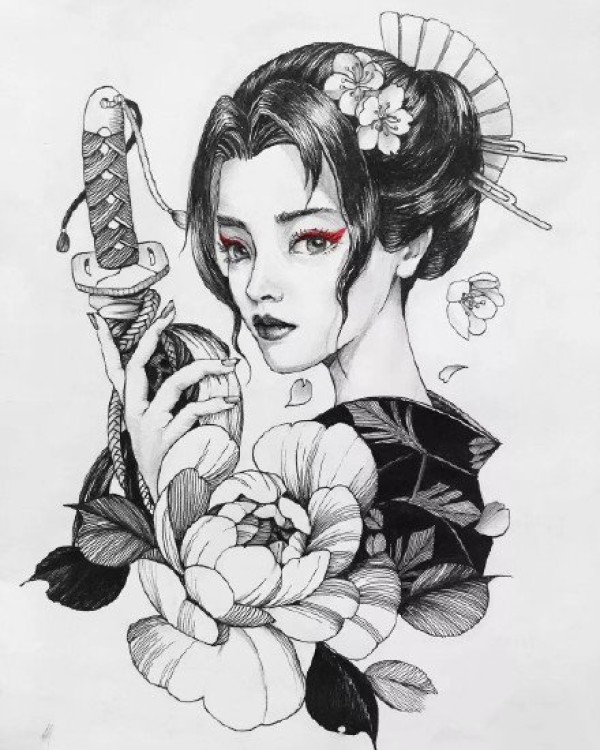 9款漂亮的艺伎纹身手稿图片赏析