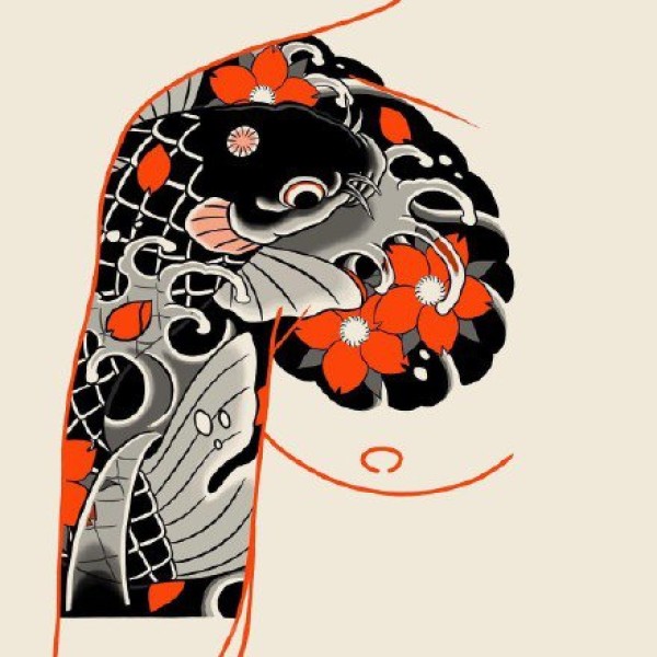 12款红黑色的日式半甲纹身手稿图片赏析