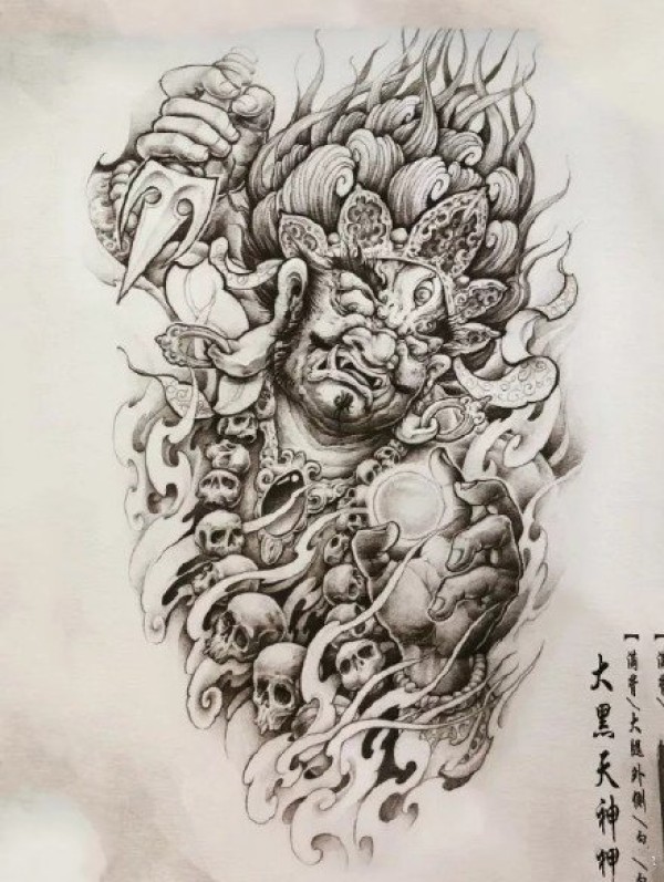 一组满背大气九龙拉棺纹身图案作品和手稿