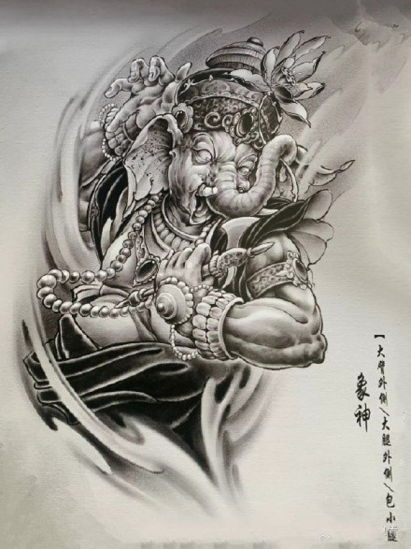 半甲唐狮手稿 传统的9款唐狮主题半甲纹身手稿图片