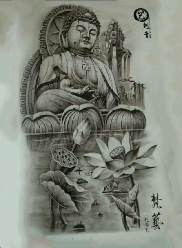 清新淡雅 北京newtattoo纹身店陈洁山水水墨纹身 (一)
