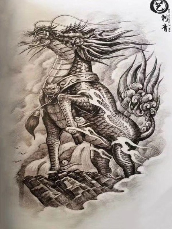 半甲唐狮手稿 传统的9款唐狮主题半甲纹身手稿图片