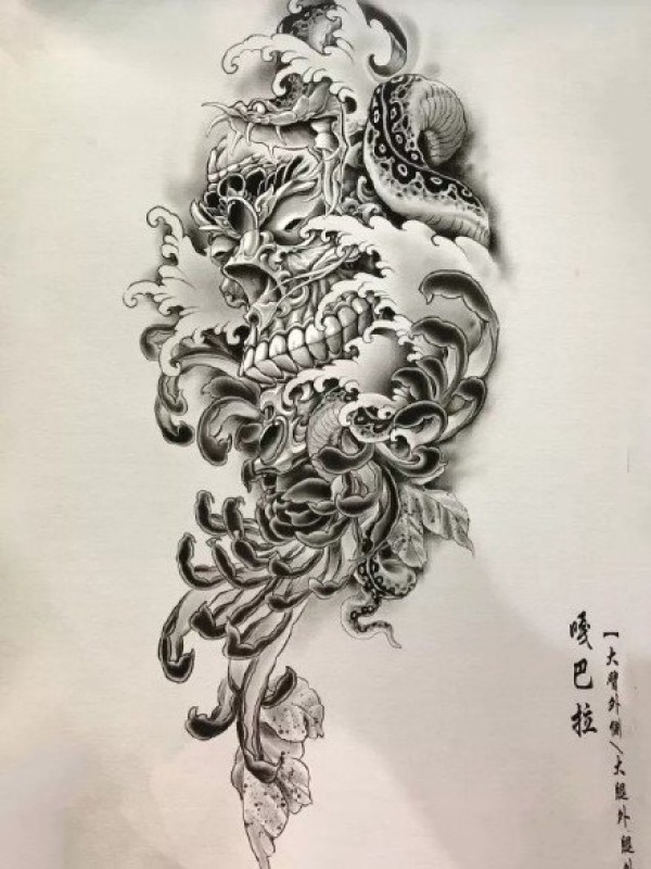 一组满背大气九龙拉棺纹身图案作品和手稿