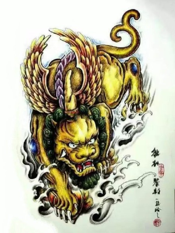 9款传统的貔貅纹身手稿图片