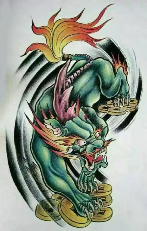 9款传统的貔貅纹身手稿图片