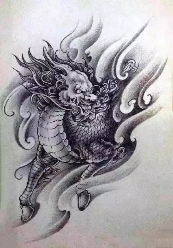 半甲唐狮手稿 传统的9款唐狮主题半甲纹身手稿图片