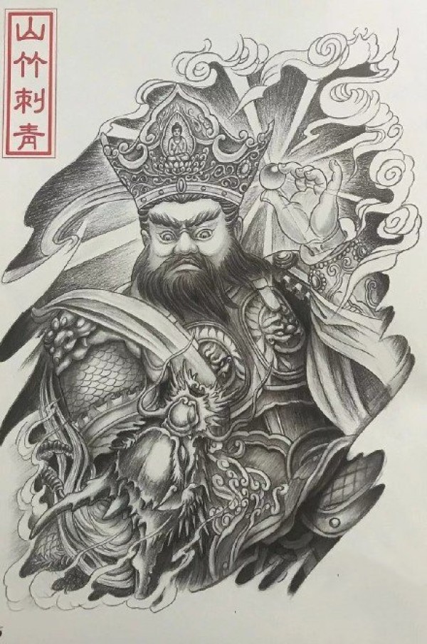 12款适合满背的四大天王纹身手稿图案