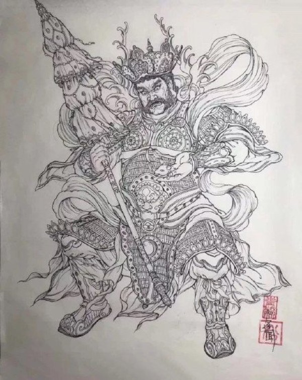 半甲唐狮手稿 传统的9款唐狮主题半甲纹身手稿图片