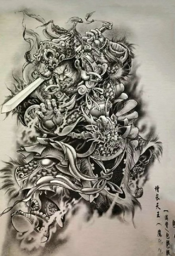 一组满背大气九龙拉棺纹身图案作品和手稿
