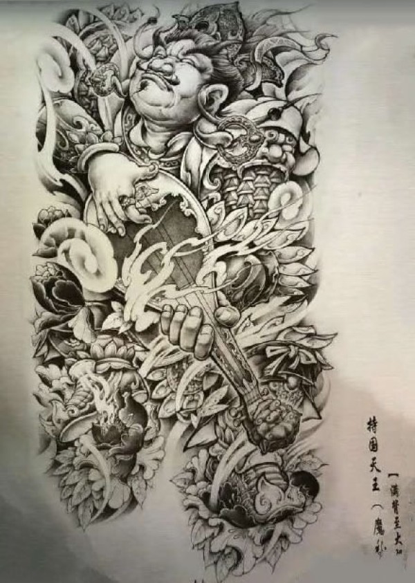 一组满背大气九龙拉棺纹身图案作品和手稿