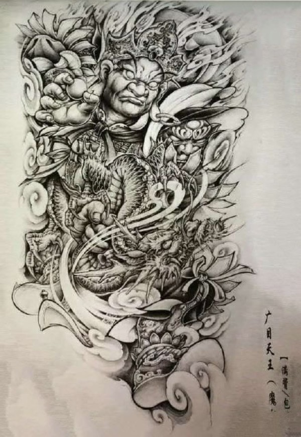 12款适合满背的四大天王纹身手稿图案