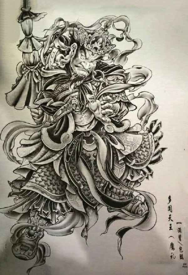 12款适合满背的四大天王纹身手稿图案