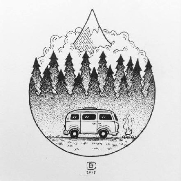 42款小圆形里的点刺山水风景纹身手稿图案