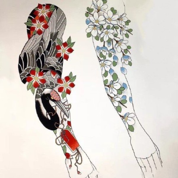 10款日式彩色大花臂纹身效果图手稿欣赏