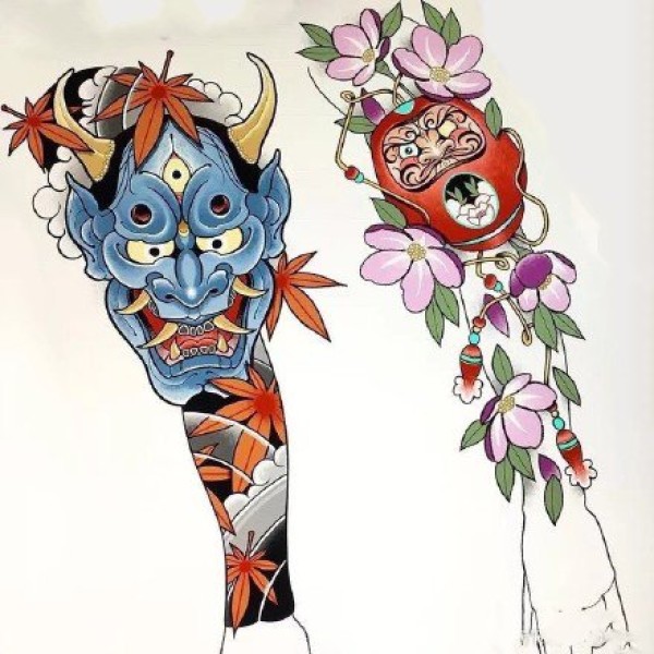 10款日式彩色大花臂纹身效果图手稿欣赏
