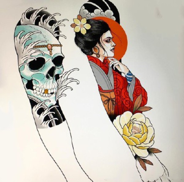 传统艺妓般若纹身图案手稿