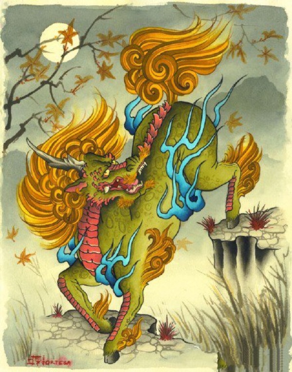 半甲唐狮手稿 传统的9款唐狮主题半甲纹身手稿图片