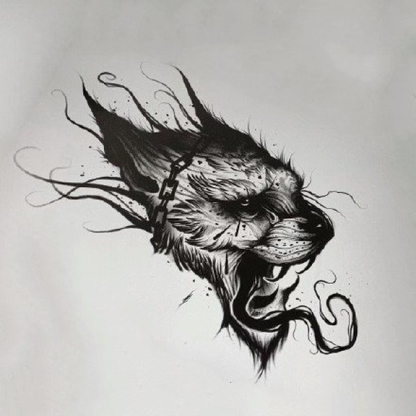 半甲唐狮手稿 传统的9款唐狮主题半甲纹身手稿图片