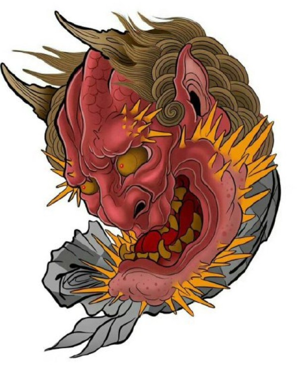 半甲唐狮手稿 传统的9款唐狮主题半甲纹身手稿图片