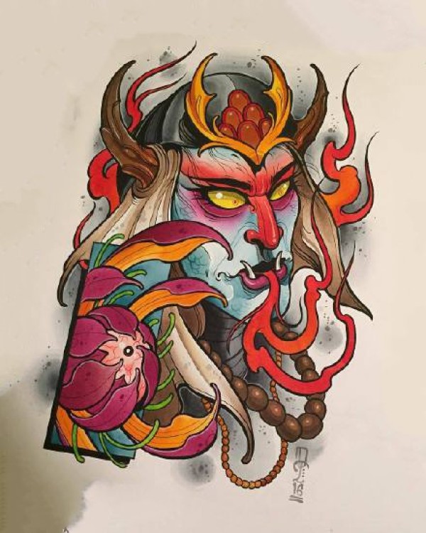半甲唐狮手稿 传统的9款唐狮主题半甲纹身手稿图片