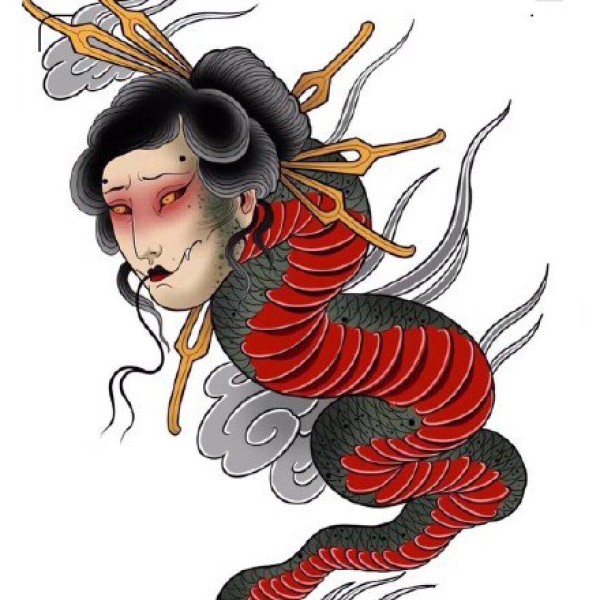 一组满背大气九龙拉棺纹身图案作品和手稿