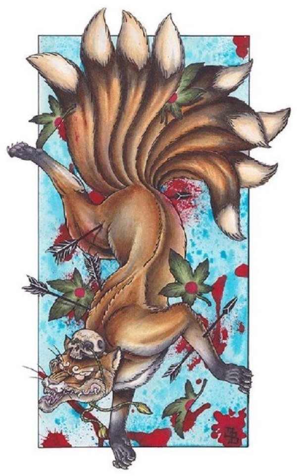 半甲唐狮手稿 传统的9款唐狮主题半甲纹身手稿图片