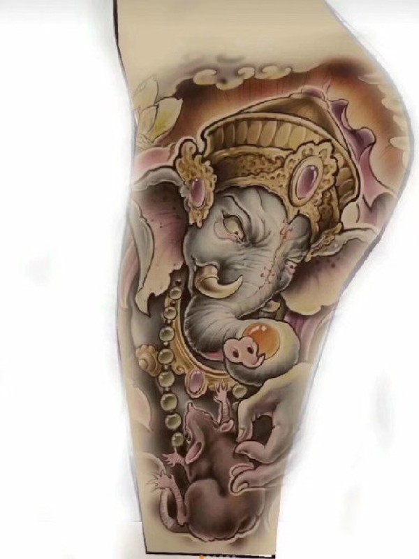 半甲唐狮手稿 传统的9款唐狮主题半甲纹身手稿图片