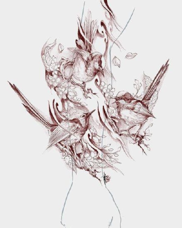 女生喜爱的简单手绘纹身图案来自于纹身师安雅