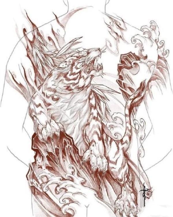 半甲唐狮手稿 传统的9款唐狮主题半甲纹身手稿图片