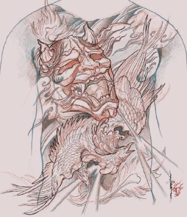 一组满背大气九龙拉棺纹身图案作品和手稿
