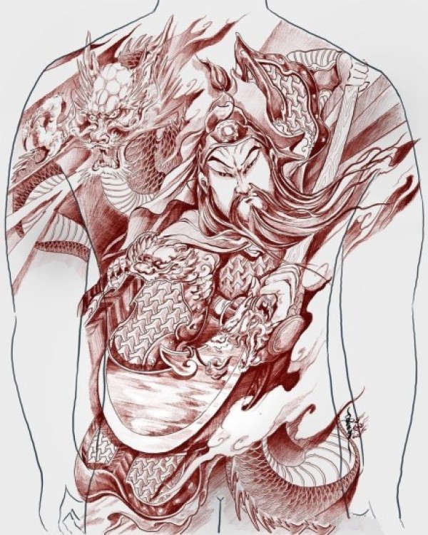 一组满背大气九龙拉棺纹身图案作品和手稿