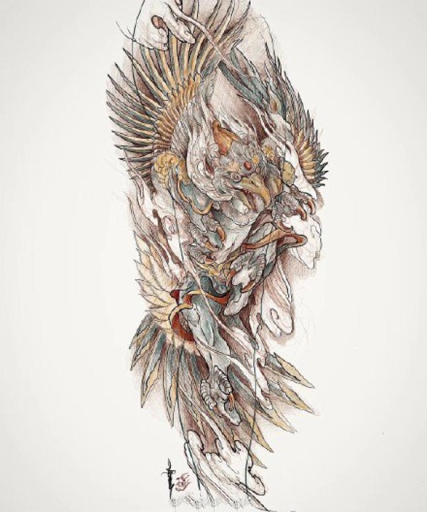 传统艺妓般若纹身图案手稿