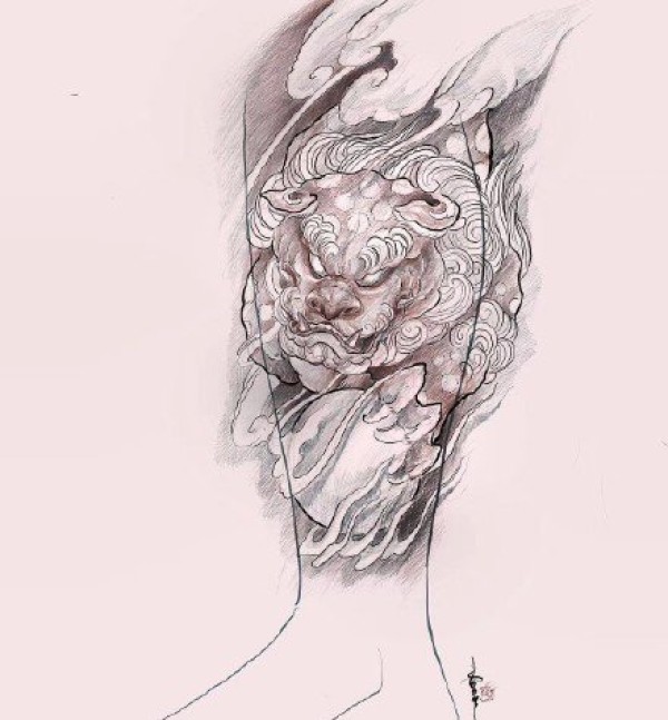 半甲唐狮手稿 传统的9款唐狮主题半甲纹身手稿图片