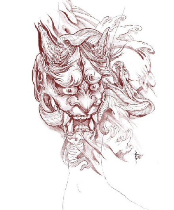 传统艺妓般若纹身图案手稿
