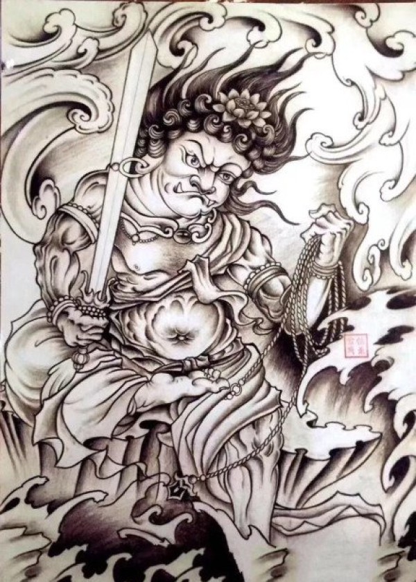 一组满背大气九龙拉棺纹身图案作品和手稿