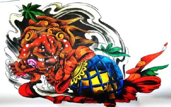 十几款彩色福狮唐狮的纹身手稿和线稿欣赏