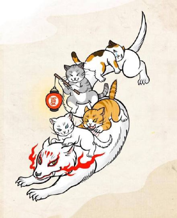 半甲唐狮手稿 传统的9款唐狮主题半甲纹身手稿图片