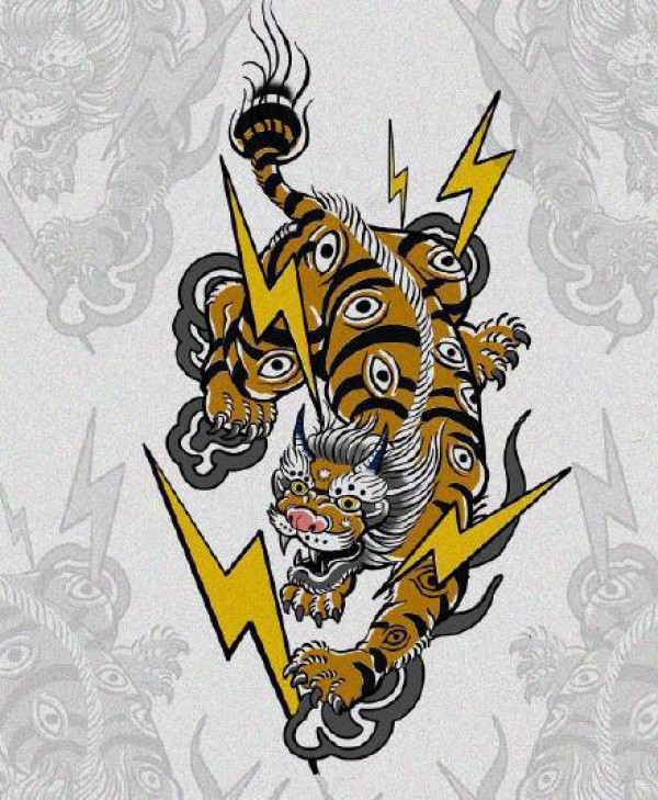 半甲唐狮手稿 传统的9款唐狮主题半甲纹身手稿图片
