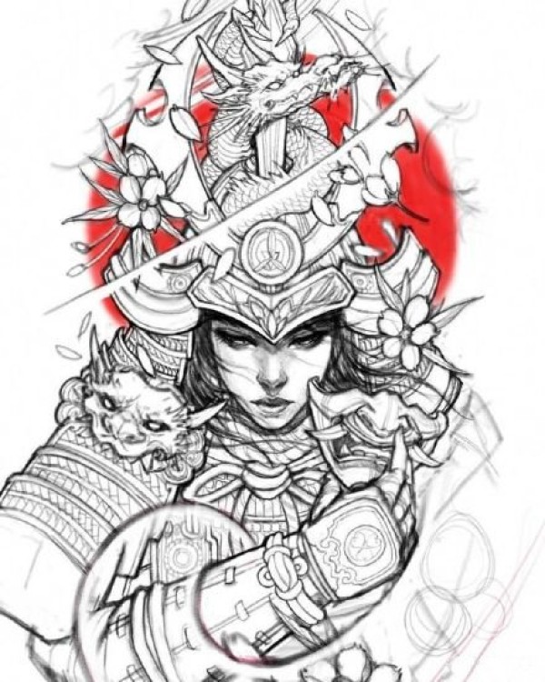 半甲唐狮手稿 传统的9款唐狮主题半甲纹身手稿图片