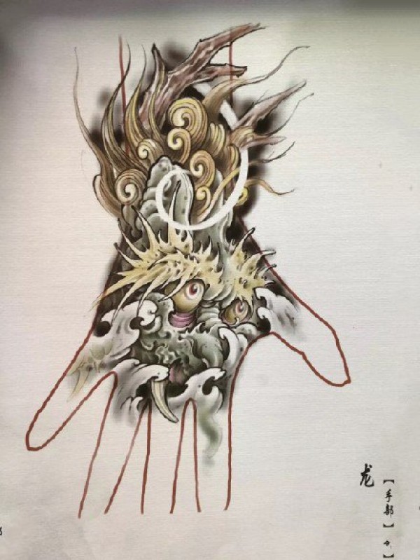 一组满背大气九龙拉棺纹身图案作品和手稿