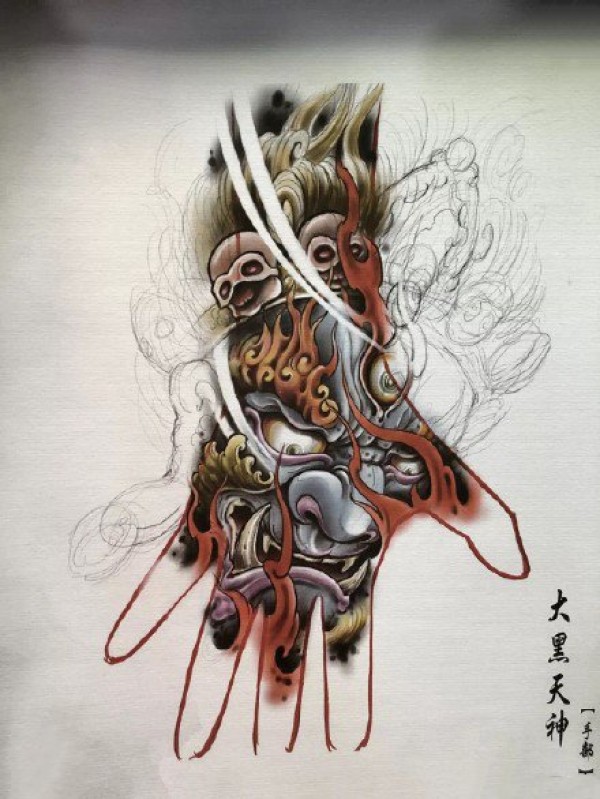 传统艺妓般若纹身图案手稿